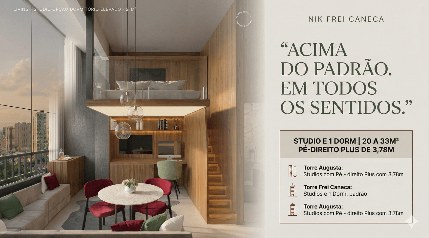 Localização estratégica, investimento inteligente, a poucos minutos da Av. Paulista e do Shopping Frei Caneca.